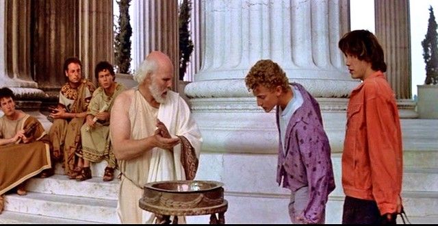 Director Stephen Herek, who had a gangbuster decade between 1986’s Critters and 1996’s Mr Holland’s Opus, before succumbing to the dreaded Hollywood “Director’s Jail” for giving us the execrable Holy Man with Eddie Murphy, isn’t the most visually electrifying director, and his staging and editing of certain sequences and overall narrative flow is clunky at best. He can’t direct action (a sequence with a couple of medieval knights and a kitchen brawl is spectacularly undercooked) but his editing of comedy is prosaic indeed, allowing both Reeves and Winter time to maximise their offbeat wit and radically pleasing charm. Several subplots to the film are cringeworthy (Bill’s stepmother and father stuff is awful, by today’s standards) but by and large, the movie works best when it’s thrusting characters into scenarios they’re unfamiliar with. For Bill and Ted, it’s anything in the past, whilst for the historical figures they bring back to the present, it’s everything in their future. Beethoven captivating mall audiences by playing multiple synthesizers and pianos at once, Joan Of Arc’s attempt to run an exercise group, and Terry Camilleri’s screamingly funny Napoleon figuring out the fun of a waterslide are among the film’s high points, and it’s all played for silly laughs and never once taken seriously.