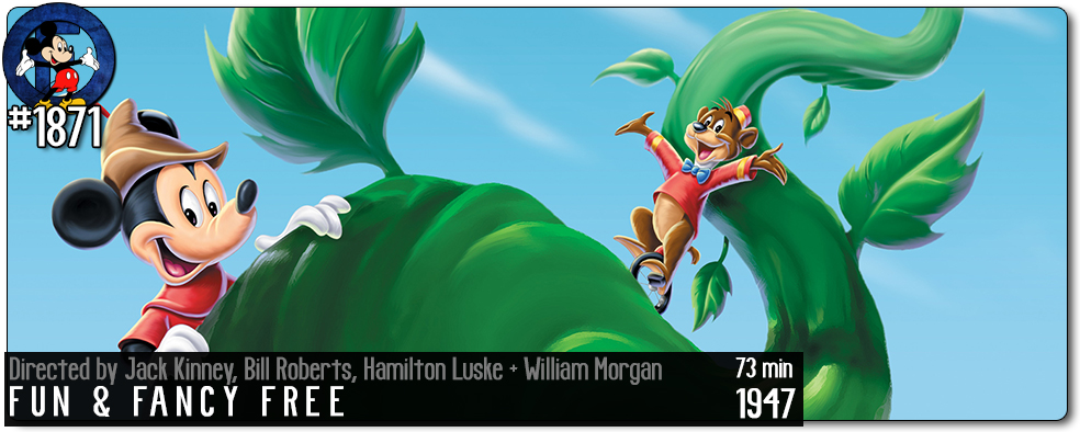 Fun & Fancy Free is a terrible title that hides some of the gems within: the Bongo story is cute, the Beanstalk tale s definitely worth a look, and the Charlie McCarthy dialogue is more often than not hilarious. It’s a shame these package films don’t really work overall thematically but they do showcase the artistry and care the animators had for their work. In parts it’s really entertaining, in other aspects it’s a bit of a drag, but as a historical document and Disney canon example there’s more good than bad. And having Jiminy Cricket back is never a bad thing.