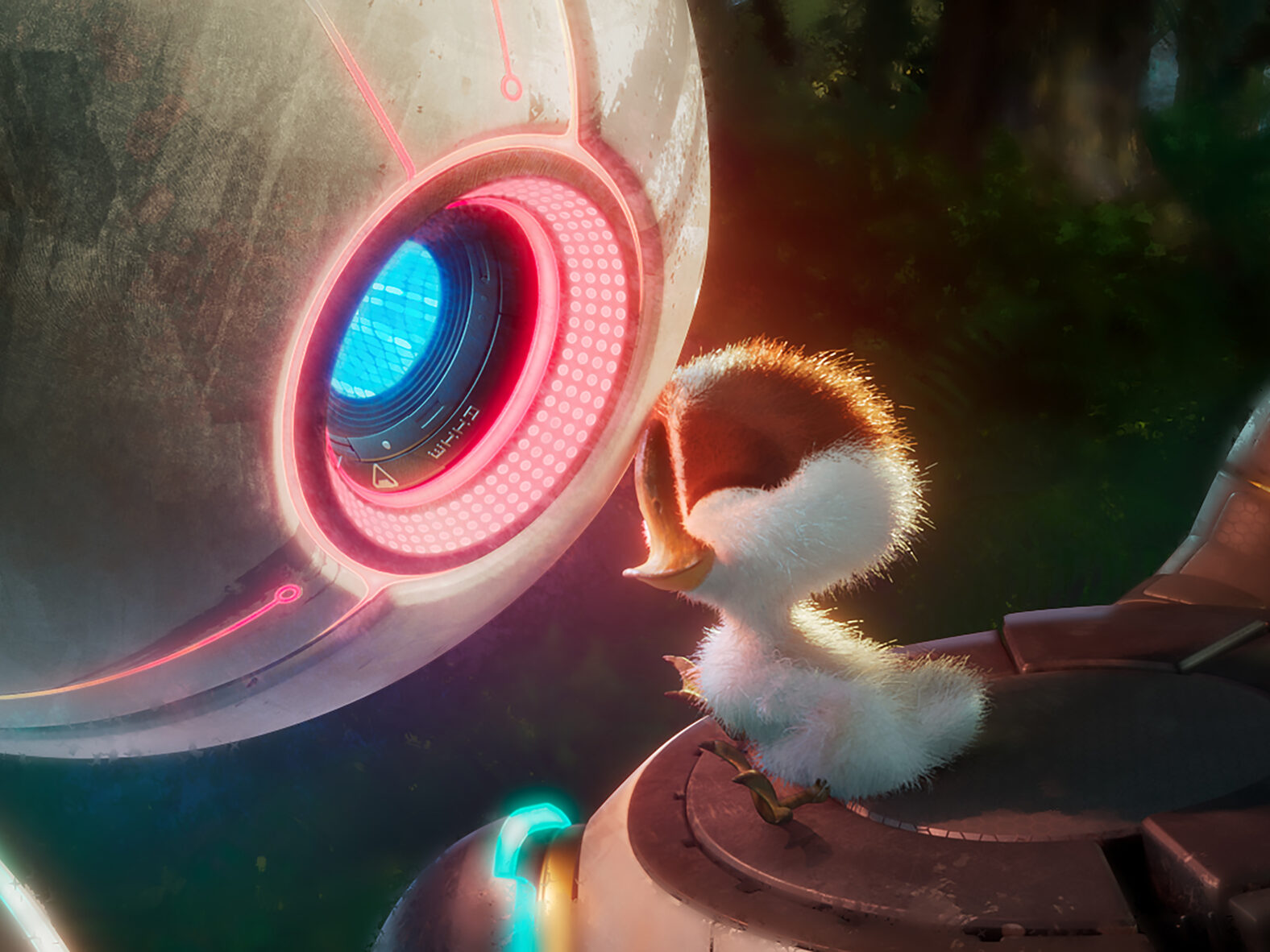 The story centres on Roz (voiced by Lupita Nyong’o), a robot who is stranded on a remote island after the cargo ship transporting her malfunctions. Upon waking, Roz must learn to survive in the wilderness, despite having no knowledge of the natural world. As she navigates the rugged terrain, Roz encounters a variety of wild animals, many of whom are initially fearful or distrustful of her. Over time, Roz begins to adapt, forging friendships with the island’s creatures, including Brightbill (Kit Connor), a gosling she adopts after its family is tragically lost. She also befriends cheeky, voracious fox, Fink (Pedro Pascal), and the pair of them raise Brightbill as he grows up to migrate away from the island along with the rest of the geese. As Roz learns to coexist with the wildlife, she discovers more about her origins and the true purpose for which she was built. However, when the peaceful life she’s built is threatened by forces from the outside world looking to reclaim her, Roz must make difficult choices to protect her new home and family.