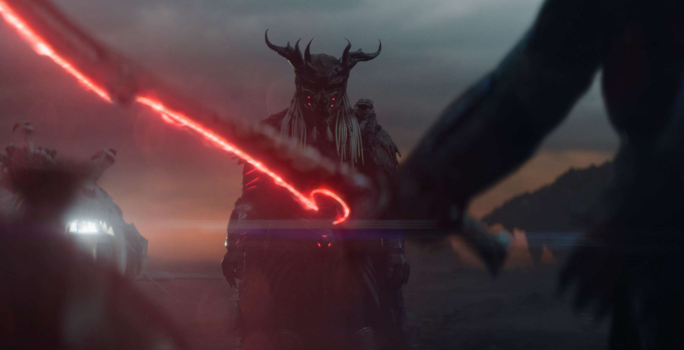 There’s something vaguely 300-esque about the Predator species here, a culture built entirely around survival of the fittest, and the early treatment of Dek by his father, Njohrr, is clearly designed to give us a point of connection to Dek’s drive to capture the Kalisk, the enormous elephantine creature inhabiting Genna. It works a treat. A lot of people can relate to shitty parents, and Dek’s smaller stature, combined with the sacrifice of his brother, Kwei, resonates surprisingly well despite the species differential. Having to prove one’s worth to a parent might seem like a trite cinematic hook, and in a weaker film it would feel generic, but it remains an eternal human theme: the desire to live up to, or exceed, some unexplained potential or imposed expectation. As a result, Badlands maintains a solid emotional throughline. Aison’s script wrangles a very masculine edginess into the principal cast, effectively crafting a boy’s-own adventure quest film played out on one of the nastiest creature-infested planets this side of a Borg Cube.